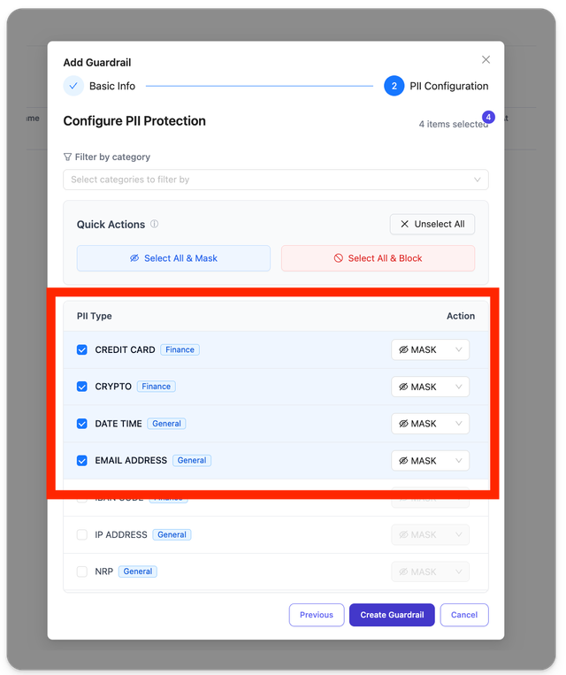 Description | Use this guardrail to mask PII (Personally Identifiable Information), PHI (Protected Health Information), and other sensitive data. |